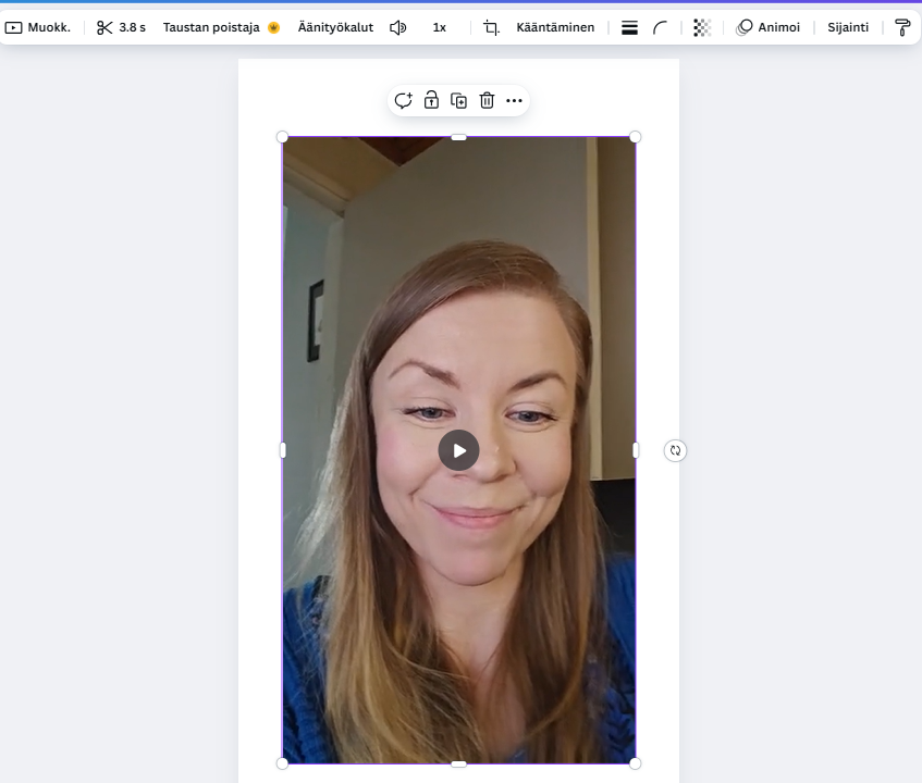 - Mikäli video ei täytä koko mallipohjaa, muokkaa se mallipohjan kokoiseksi vetämällä kulmista. Huomio! Vedä ainoastaan kulmista, jotta video pysyy oikean kokoisena! Jos venytät sitä muuten, kuva voi vääristyä.